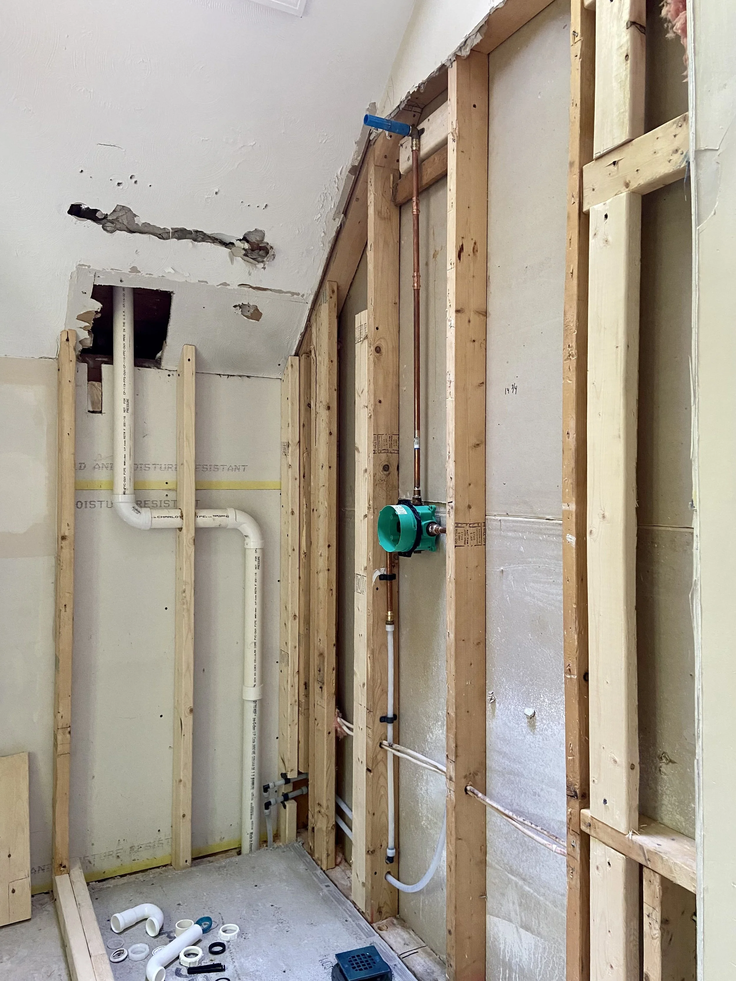 Eğer tesisat işi yapılacaksa -bizim durumumuzda duş hatlarını taşıdık ve lavabo ile çamaşır makinesine giden hatları değiştirdik- yalıtım ve duvar örme işlemlerine geçmeden önce elektrik müfettişinin işin doğru yapıldığını onaylamak için öncelikle izin belgesini imzalaması gerekir.