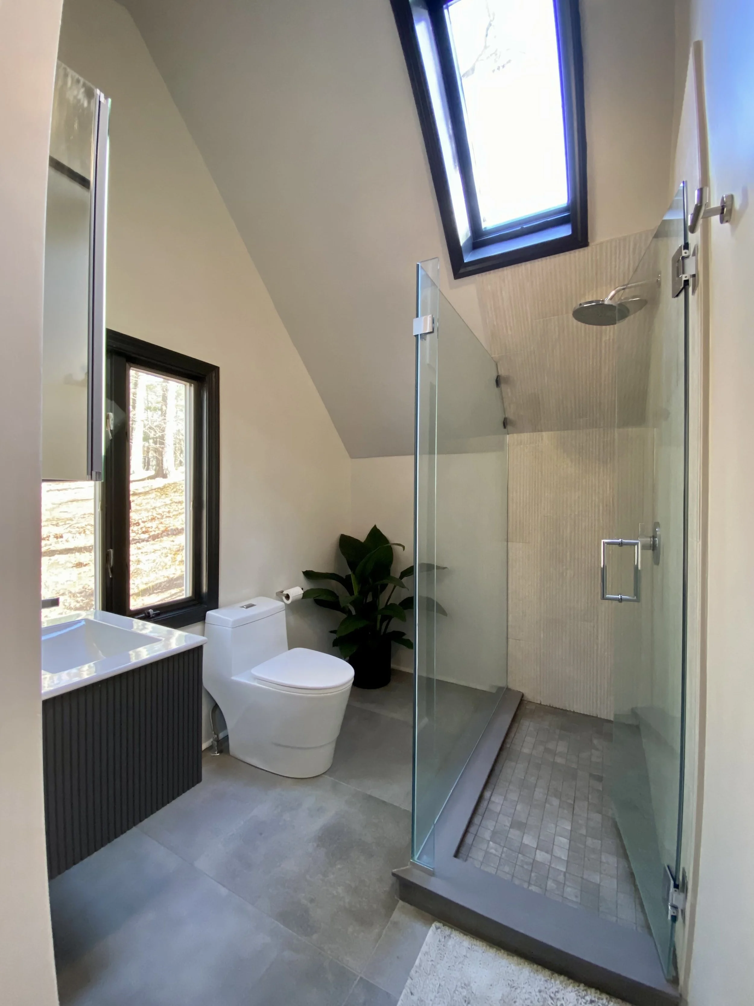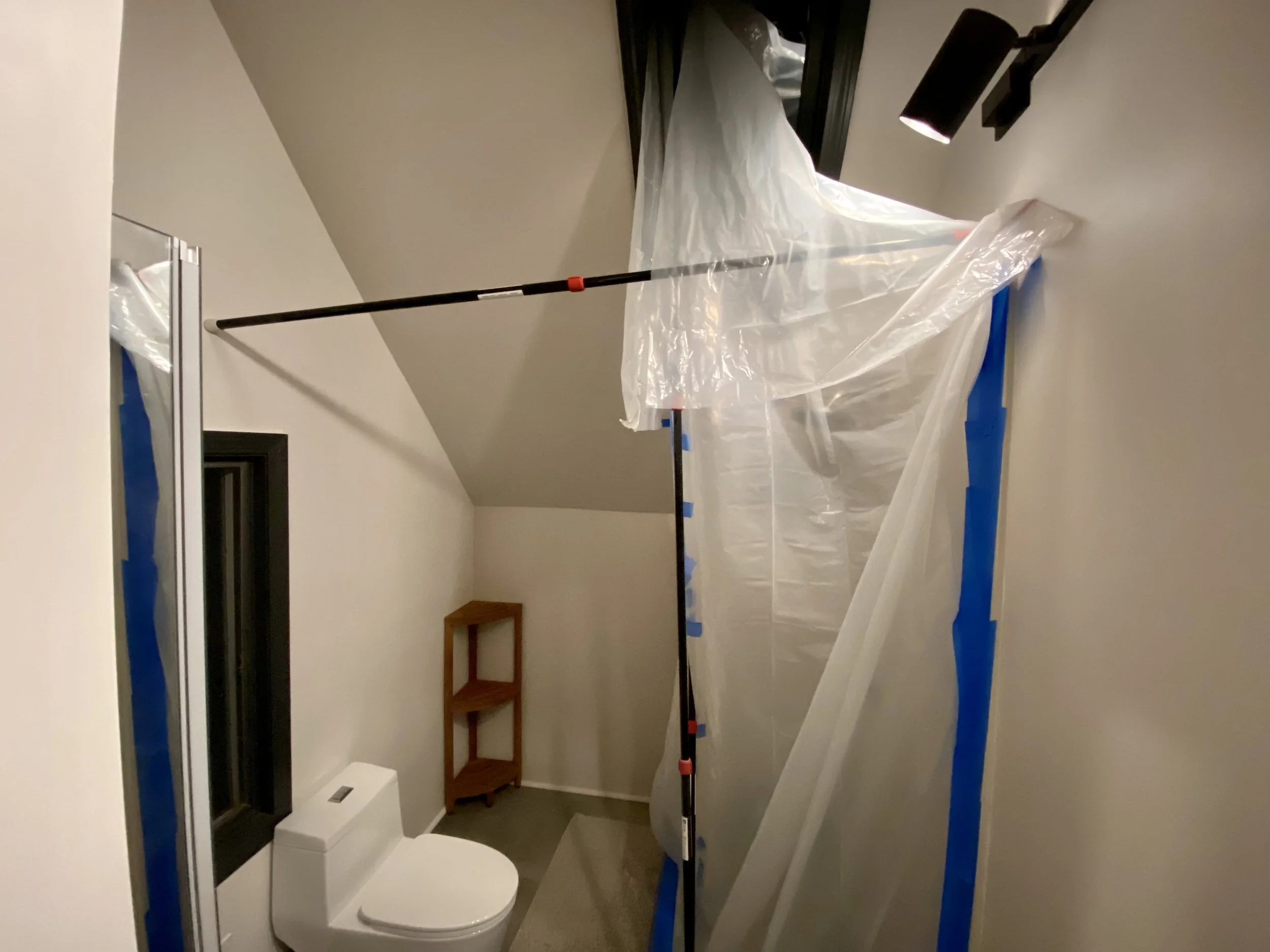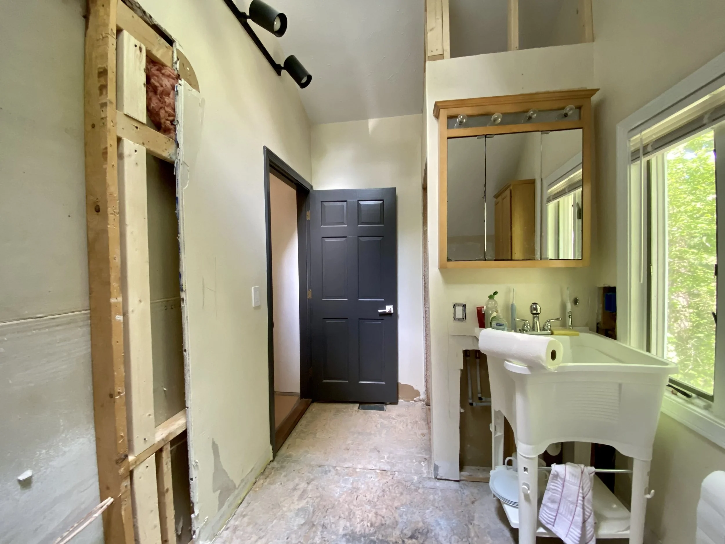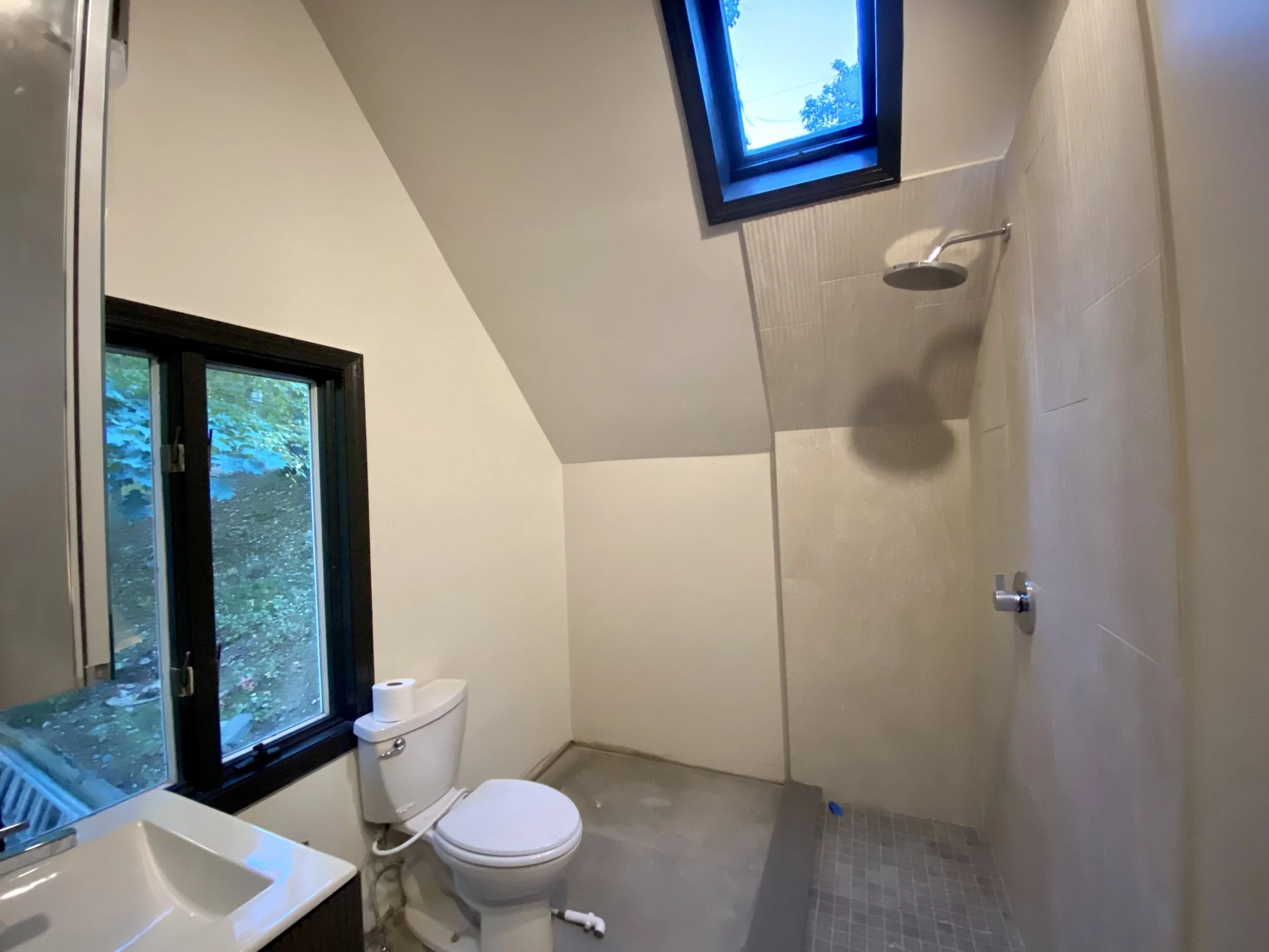 Ve elbette, inşaat projelerinde beklendiği gibi, beklenmedik olaylara ve maliyetlere hazırlıklı olun. Bizim başımıza da geldi – banyomuzun eğimli tavanı daha önce fayans döşendiği için sarkmış ve eğrilmişti ve su oraya ulaşmıştı. Erick, fayansların teğet geçeceği için döşemeye devam edemedi.
