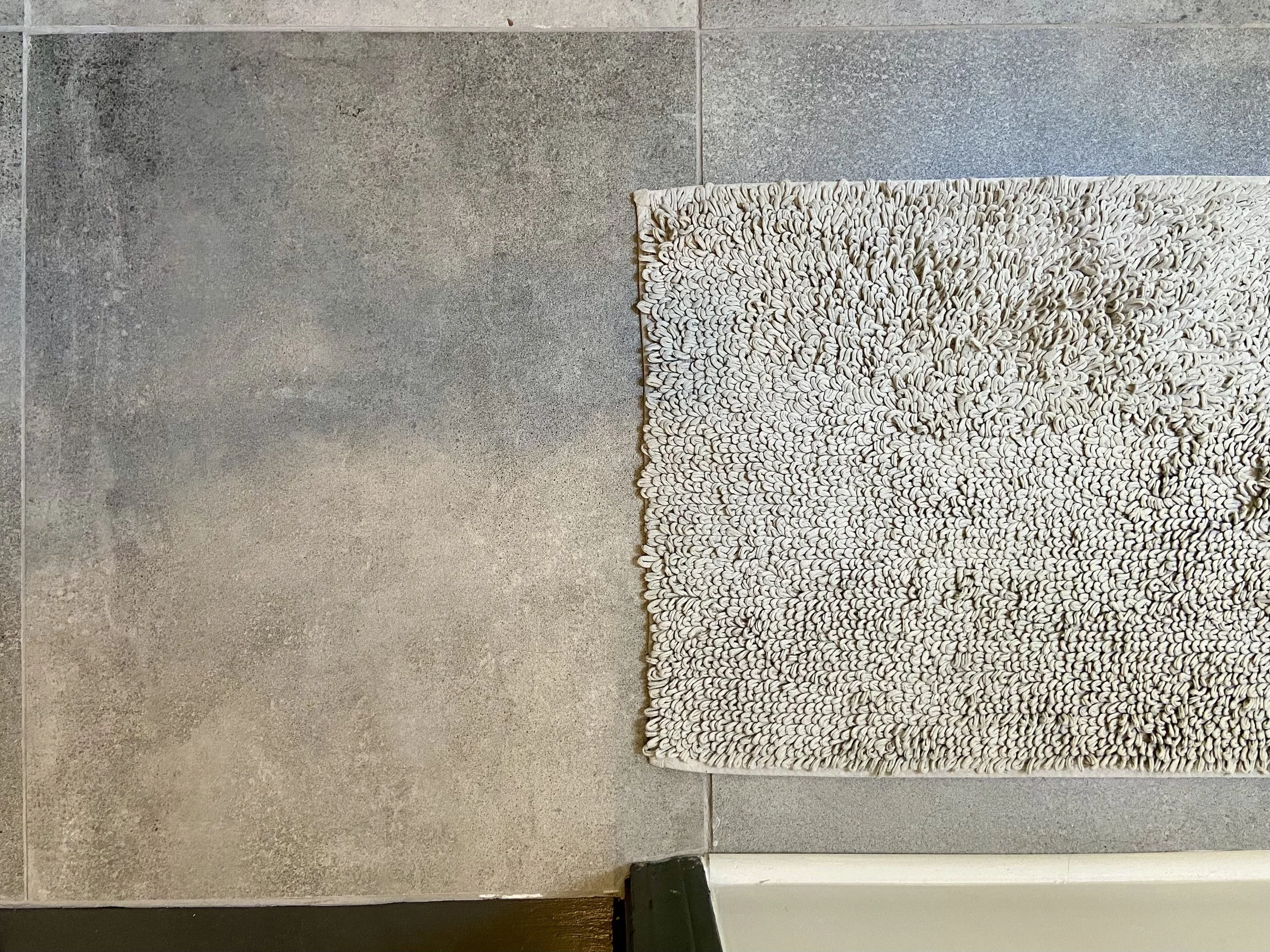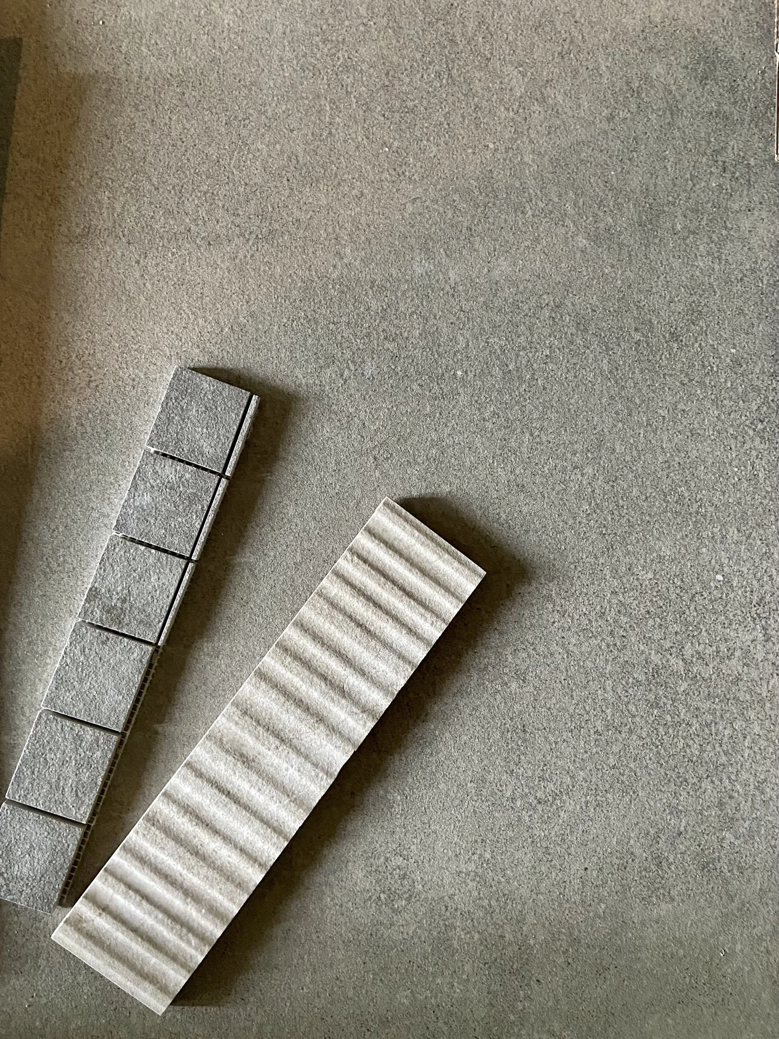 Öncelikle banyo zeminleri için büyük formatlı, çimento görünümlü fayanslarda karar kıldık: