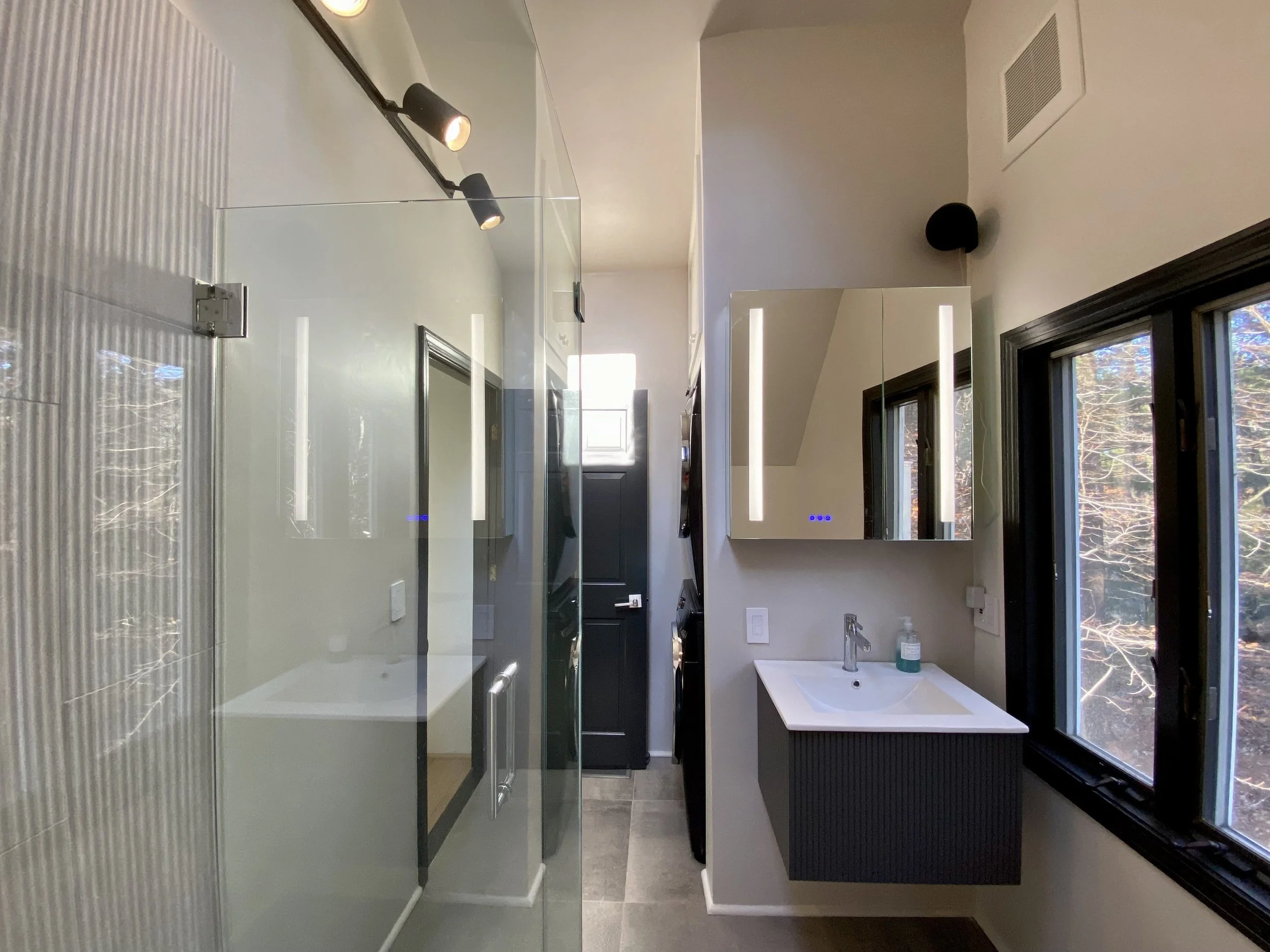 Her neyse, çamaşır ve kurutma makinesinin üzerindeki alanı genişletmek ve küveti cam bölmeli bir duşa dönüştürmek en büyük değişikliklerdi. Geri kalanlar yüzeysel ve modüler güncellemelerdi.