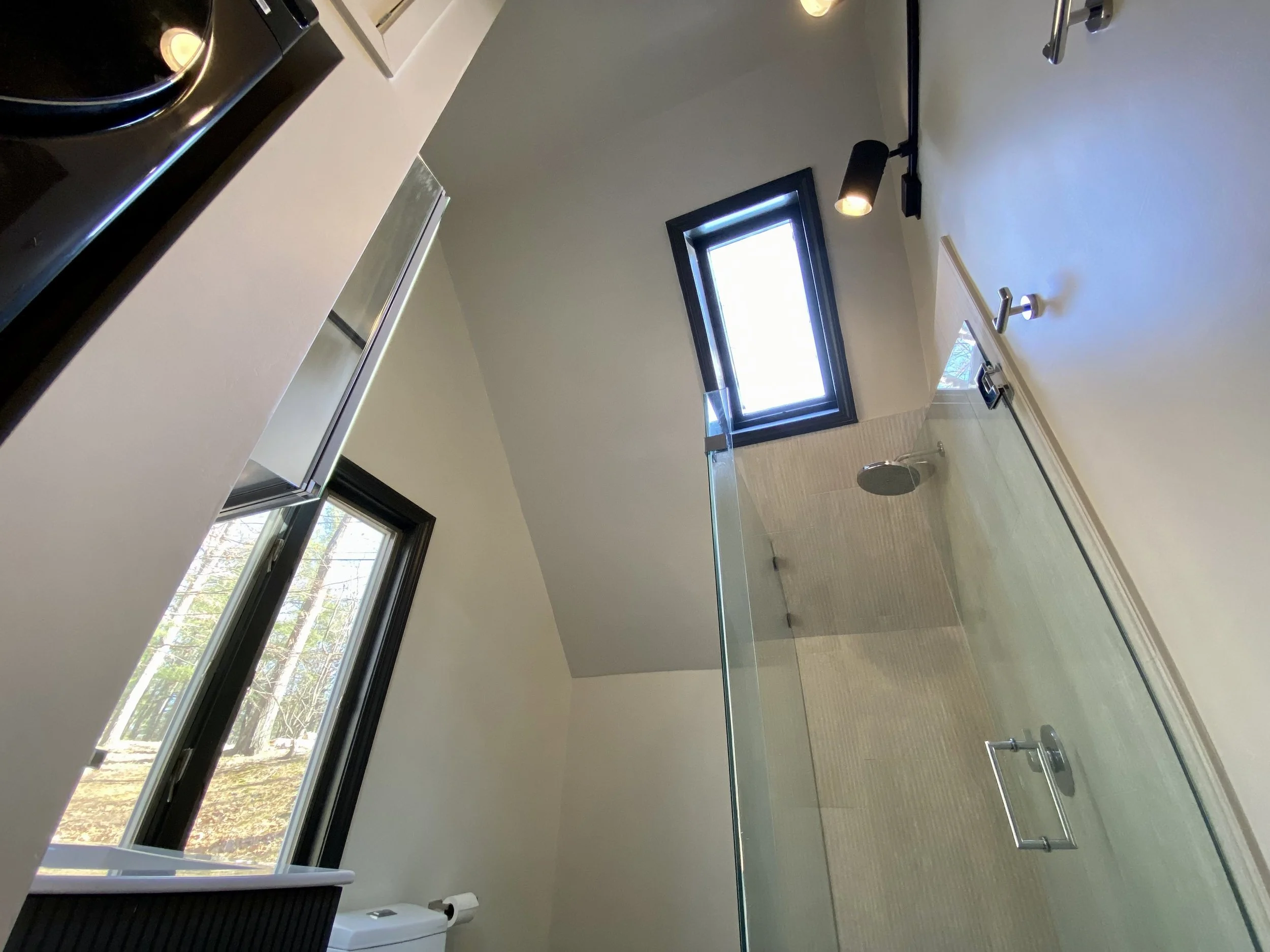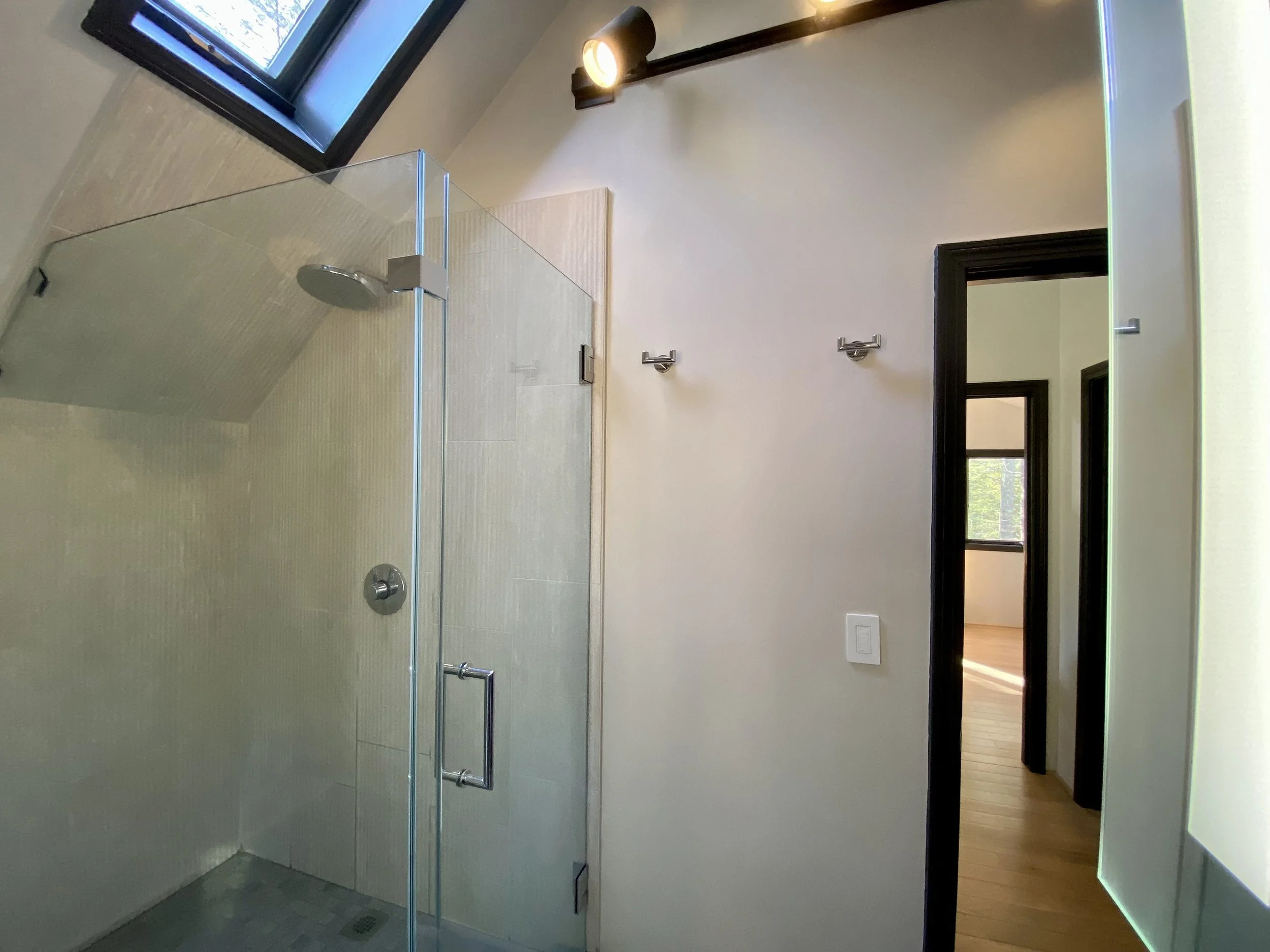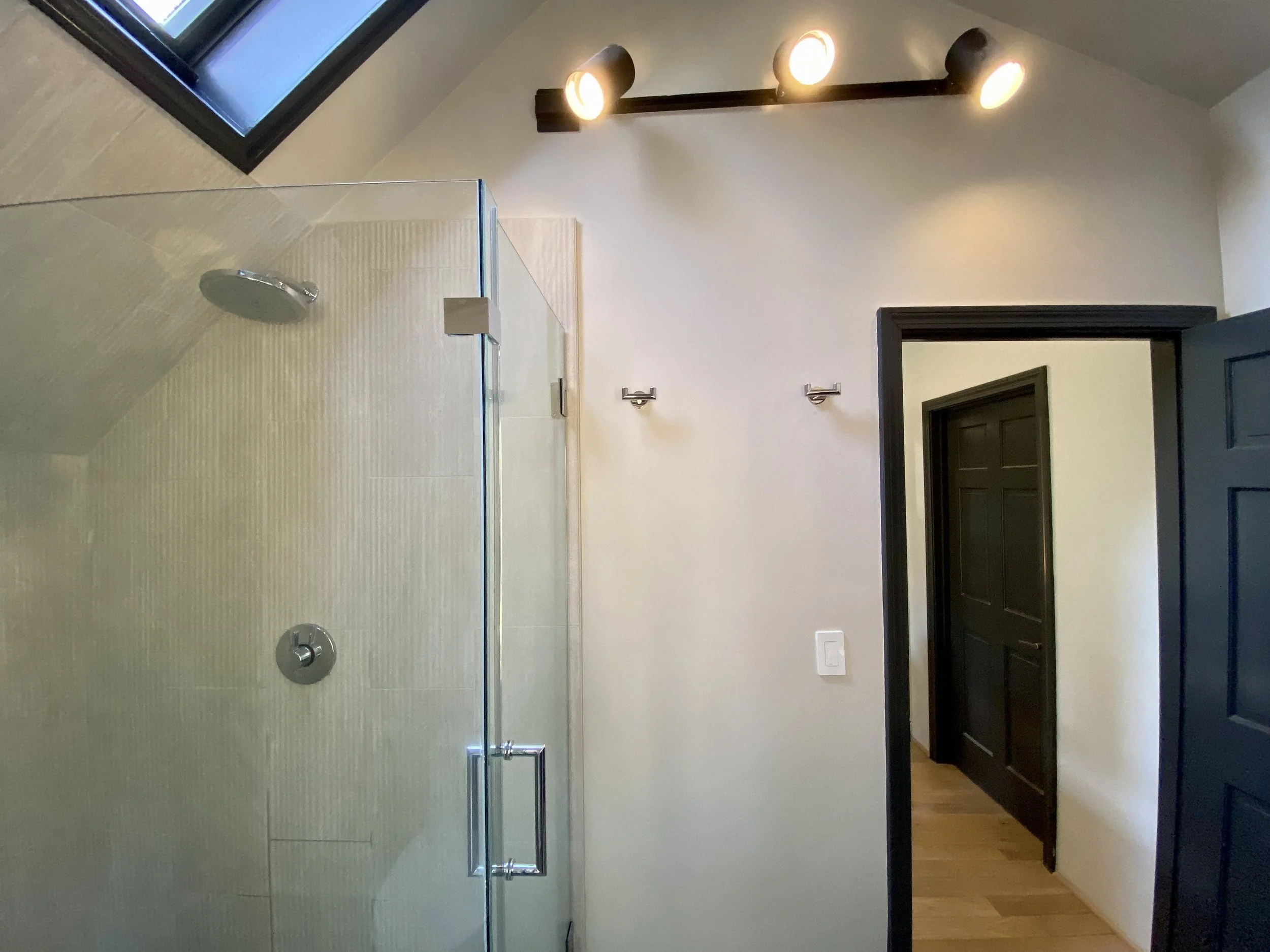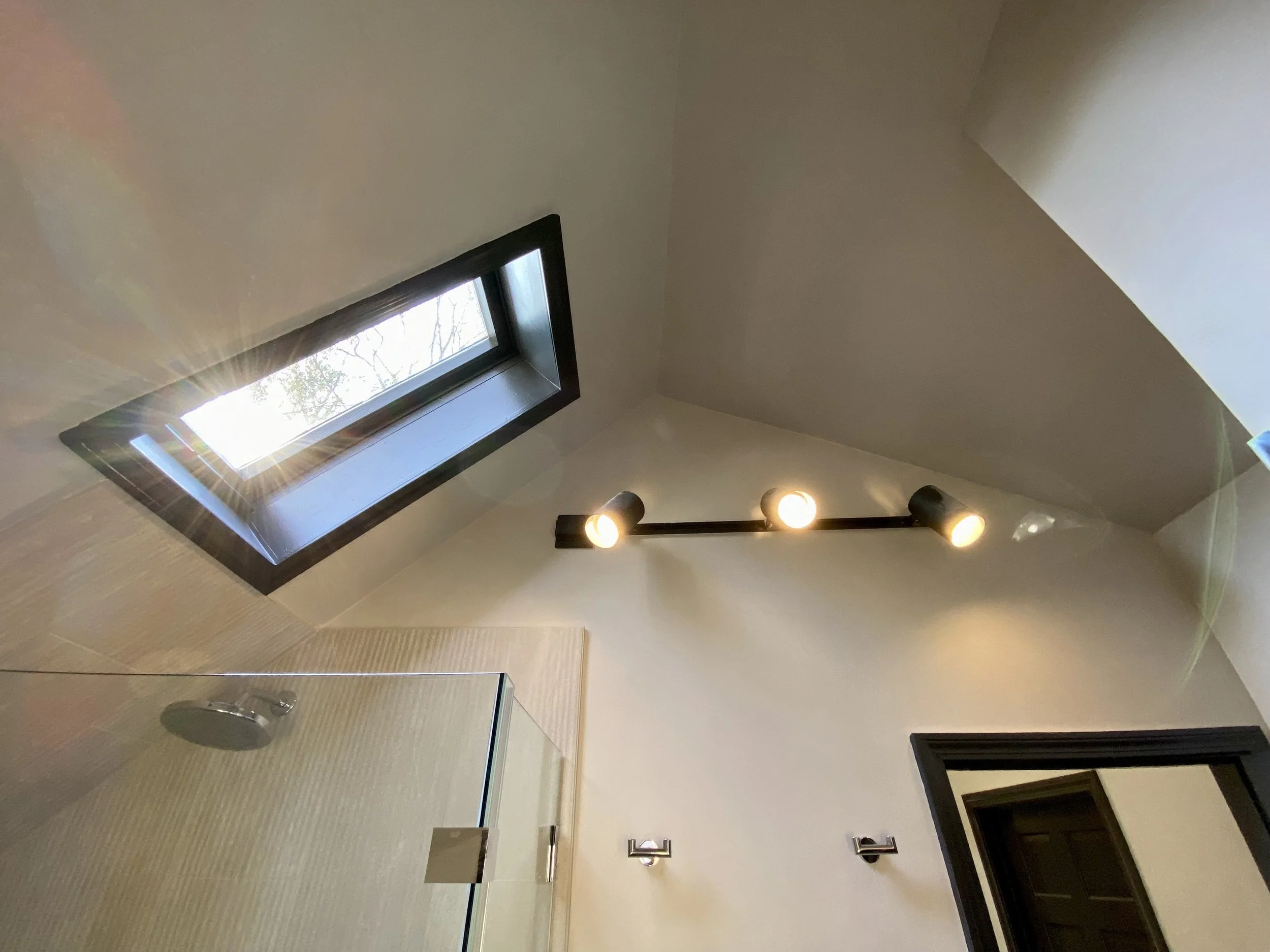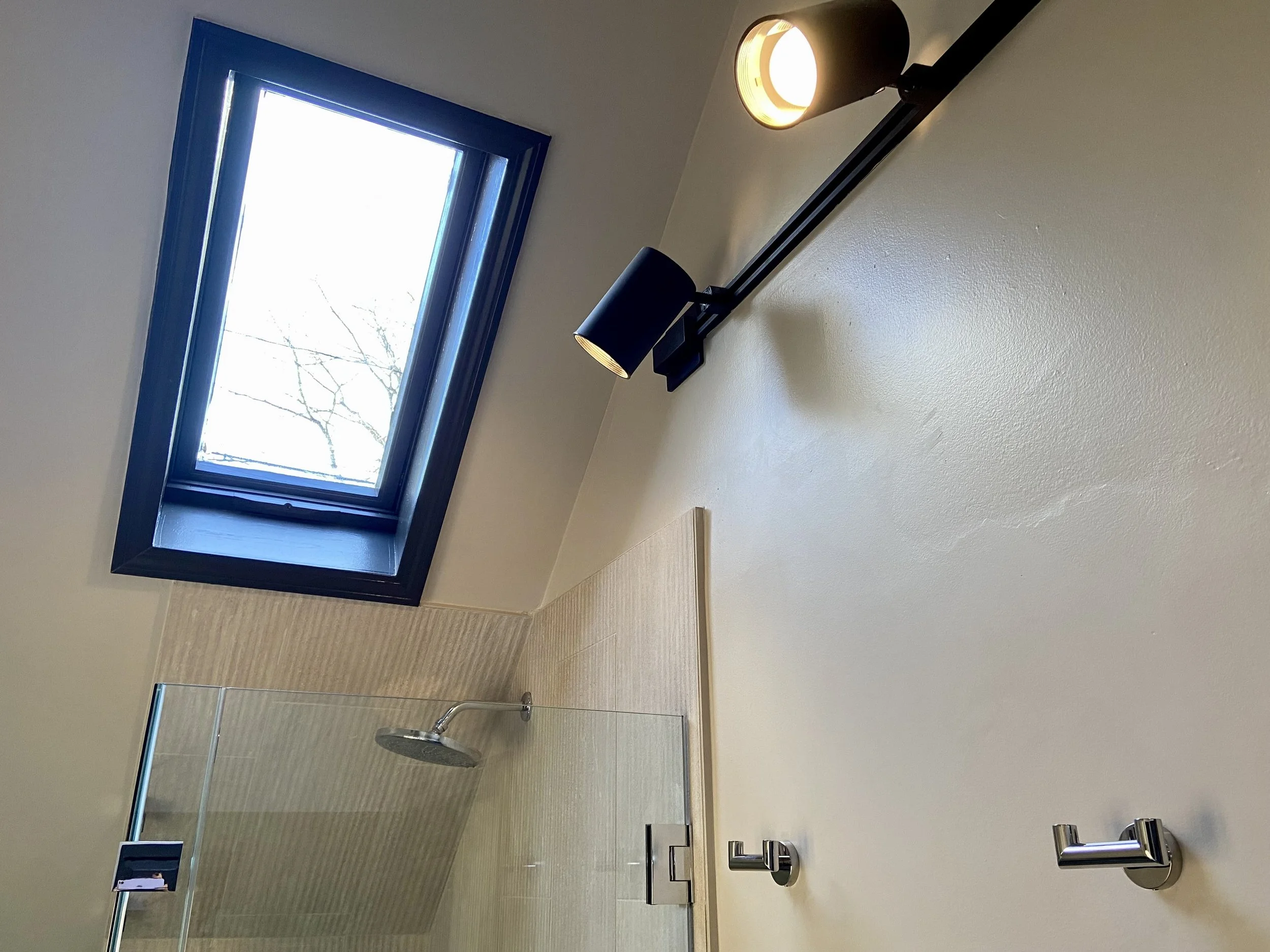 Duş başlığı duvarı. Tavan penceresini çok seviyorum; içeri giren ışığı engelleyen bir duvarın olması mantıklı değil.