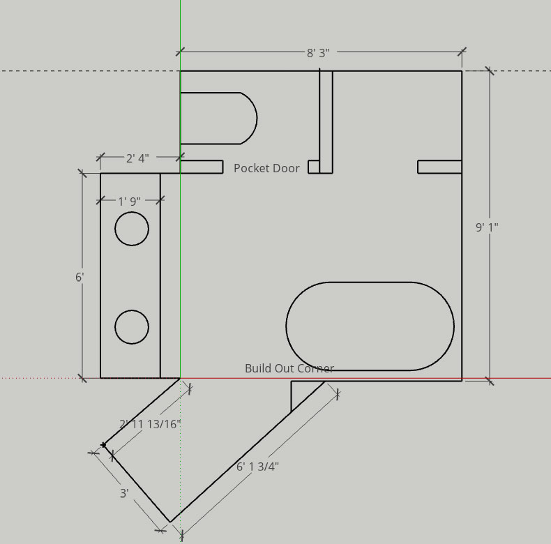 Baştan beri ayrı bir tuvalet ve daha büyük bir duş istediğimize karar vermiştik, ancak yukarıda bahsettiğim engeller işleri gerçekten zorlaştırdı. Sonunda, tesisatta çok fazla köklü değişiklik yapmadan istediğimiz şeyleri mevcut yerleşime nasıl sığdırabileceğimizi bulduk. Aşağıdaki önceki ve sonraki kat planında planladıklarımızı görebilirsiniz!