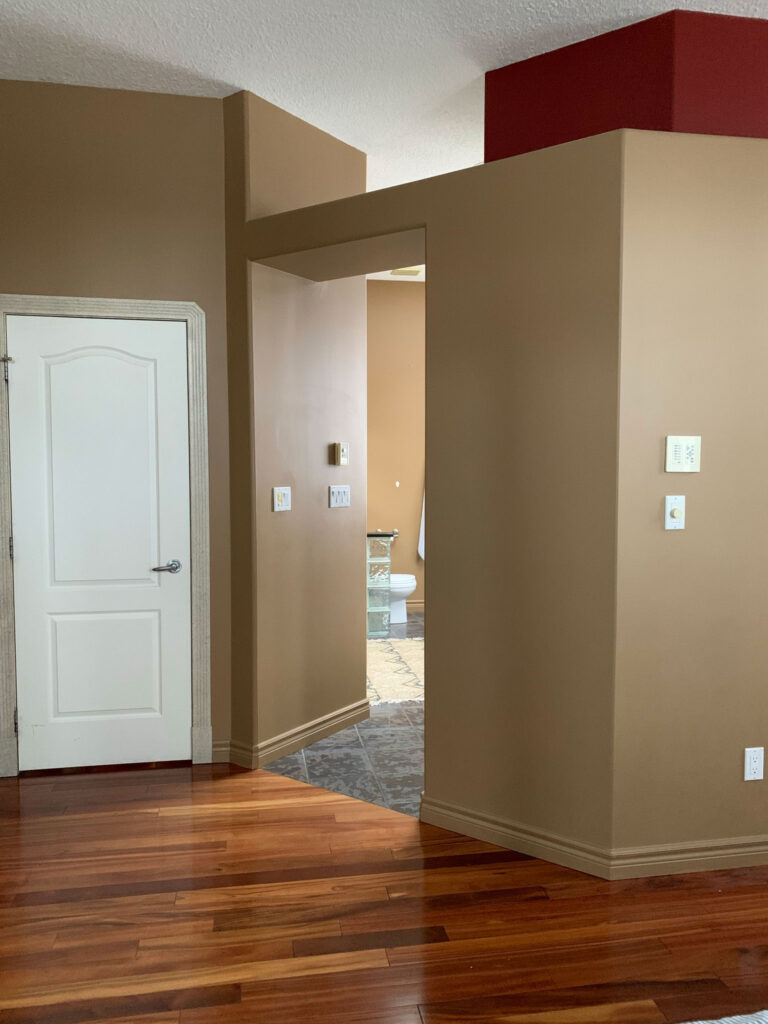 Daha önce taşındığımızda tuvaleti yataktan görebiliyorduk! O zamandan beri bu açıklığa sürgülü bir kapı ekledik.